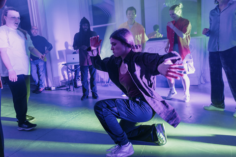 As part of her MFA thesis, graduate fellow Emily Culbreath transformed Public Space 1 to embody a New York dance club, immersing her students in street dance and storytelling.