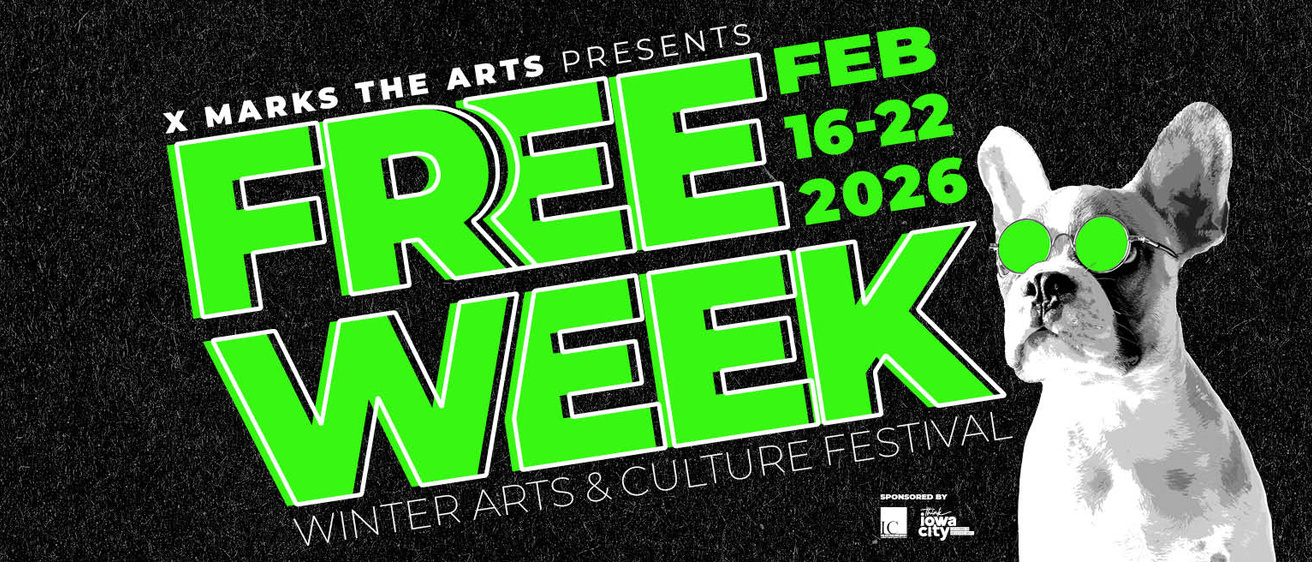 Breadcrumb Home News X Marks the Arts Presents: Free Week 2026 Iowa City’s Winter Arts & Culture Festival is back! Wednesday, January 14, 2026 Performing Arts At Iowa https://performingarts.uiowa.edu/news/2026/01/x-marks-arts-presents-free-week-2…